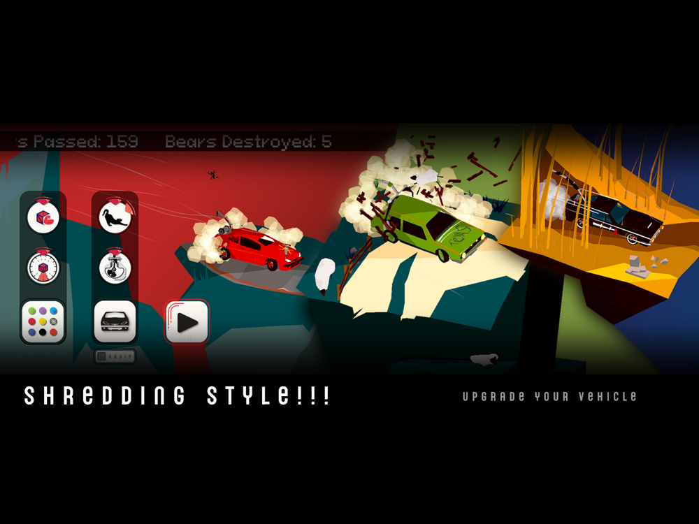 Use hook points to swing around tree stumps, increasing speed. Power-ups and car upgrades increase your chances of survival.