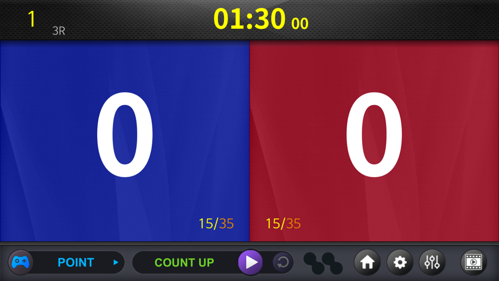 -’카운트 업 모드’는 상대방의 전자호구를 타격하면 자신의 점수가 증가하고 설정한 시간이내에 점수가 높으면 이기는 게임입니다.