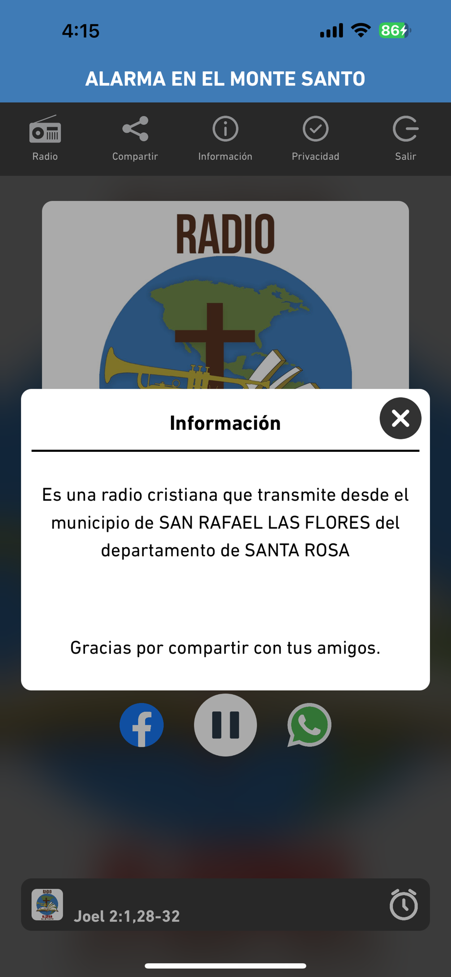 Es una radio cristiana que transmite desde el municipio de SAN RAFAEL LAS FLORES del departamento de SANTA ROSA.