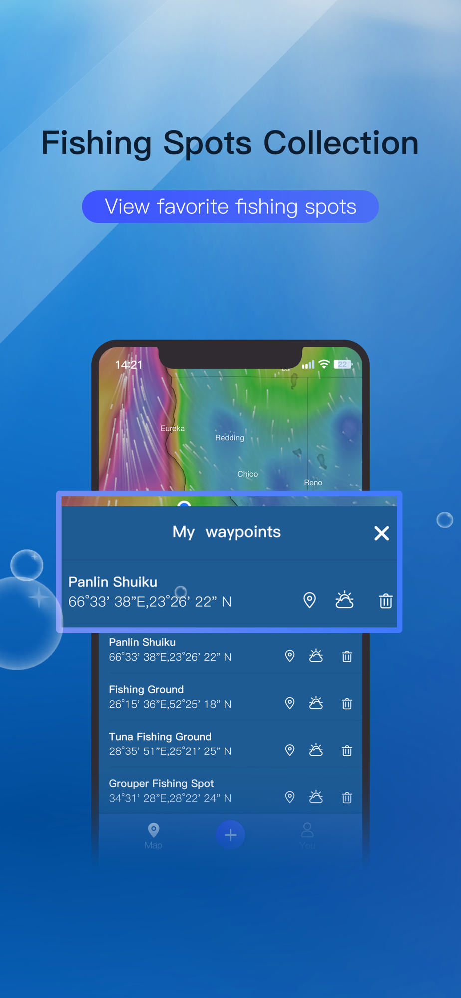 ④ Fishing Spot: Mark your fishing spots with a single click and make your fishing trips easier!