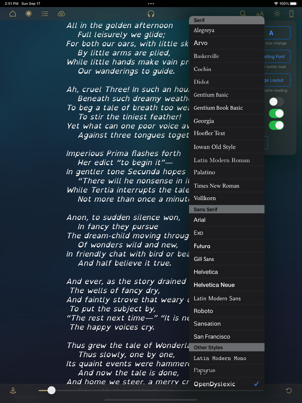 - A choice of UI text sizes makes reading in non-book views much more comfortable.